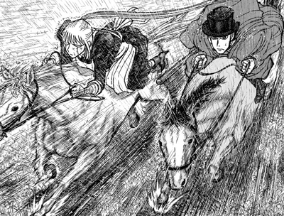 メアリーと義父のティモシー卿が乗った馬車が凶賊たちに襲撃され窮地に陥る。